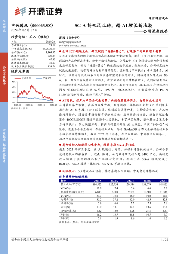 【开源证券】【20240207】20240207-开源证券-中兴通讯-000063.SZ-公司深度报告:5G-A扬帆风正劲,踏AI增长新浪潮-22页