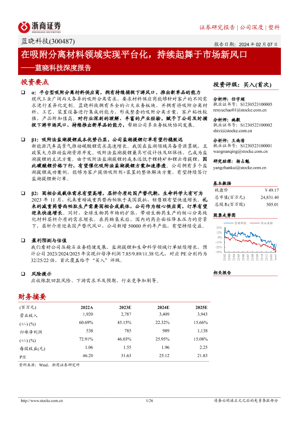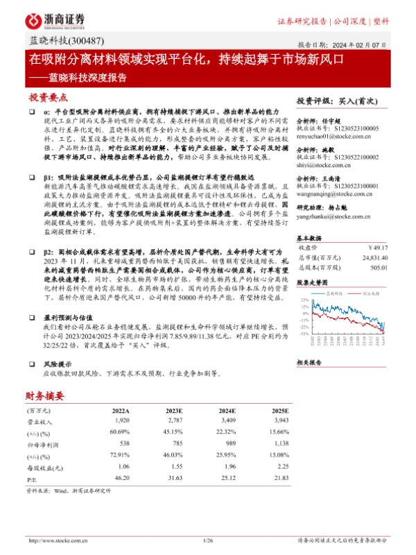 【浙商证券】【20240207】蓝晓科技深度报告:在吸附分离材料领域实现平台化,持续起舞于市场新风口-26页