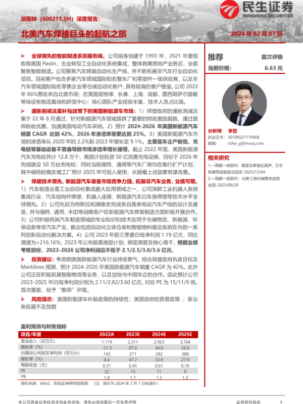 【民生证券】【20240207】20240207-民生证券-派斯林-600215.SH-深度报告:北美汽车焊接巨头的起航之旅-34页