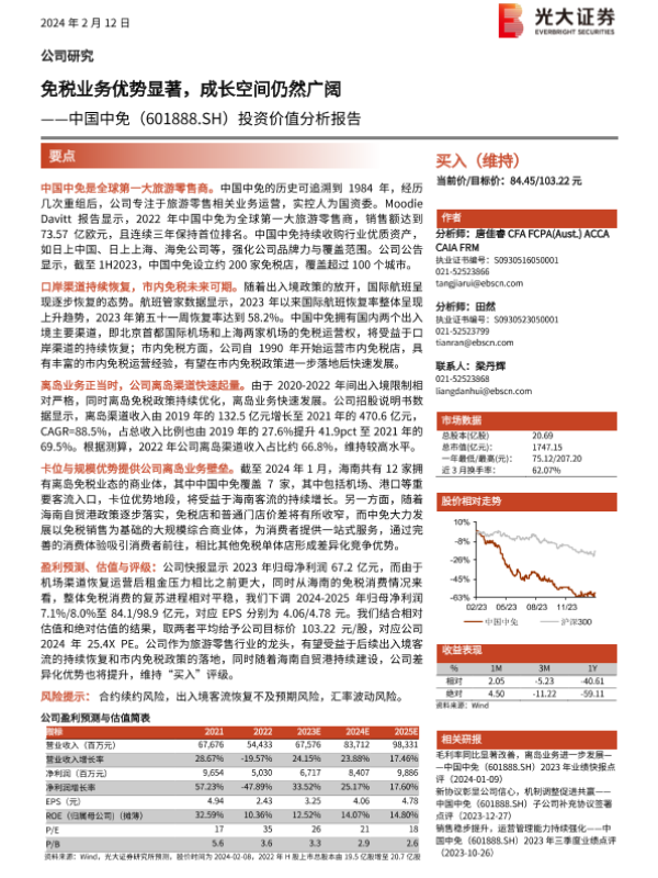 【光大证券】【20240212】20240212-光大证券-中国中免-601888.SH-投资价值分析报告:免税业务优势显著,成长空间仍然广阔-42页