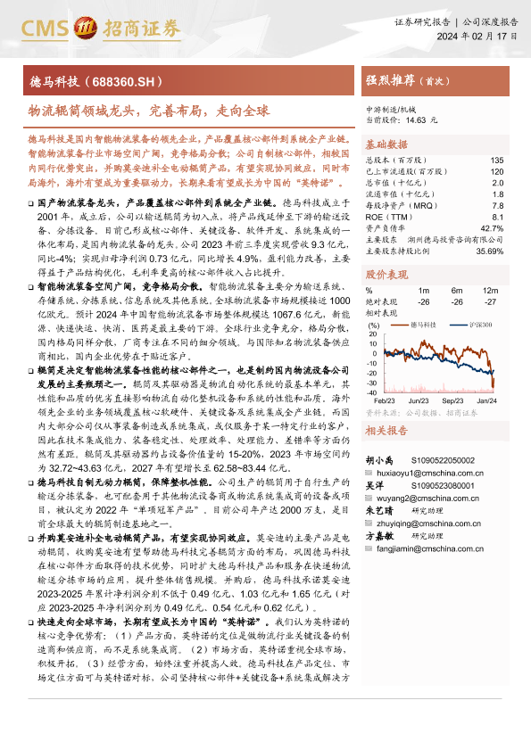 【海通证券】【20240217】物流辊筒领域龙头,完善布局,走向全球-24页