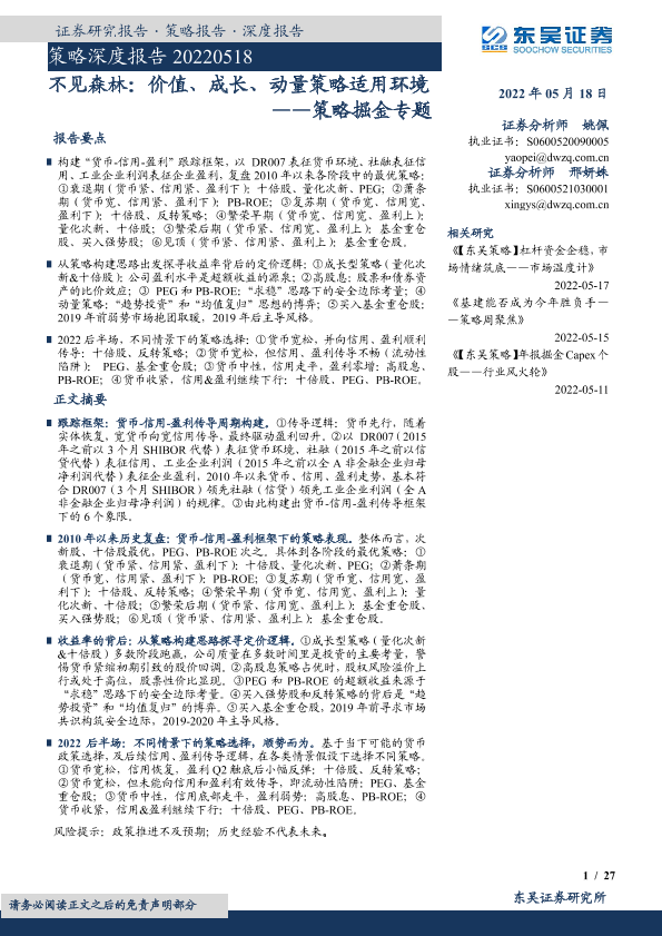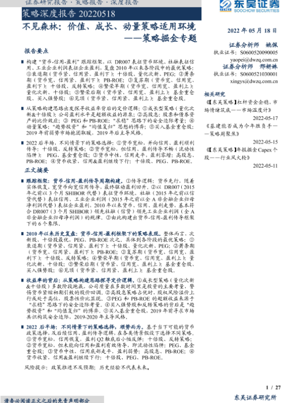 【东吴证券】【20220518】策略掘金专题:不见森林,价值、成长、动量策略适用环境-27页