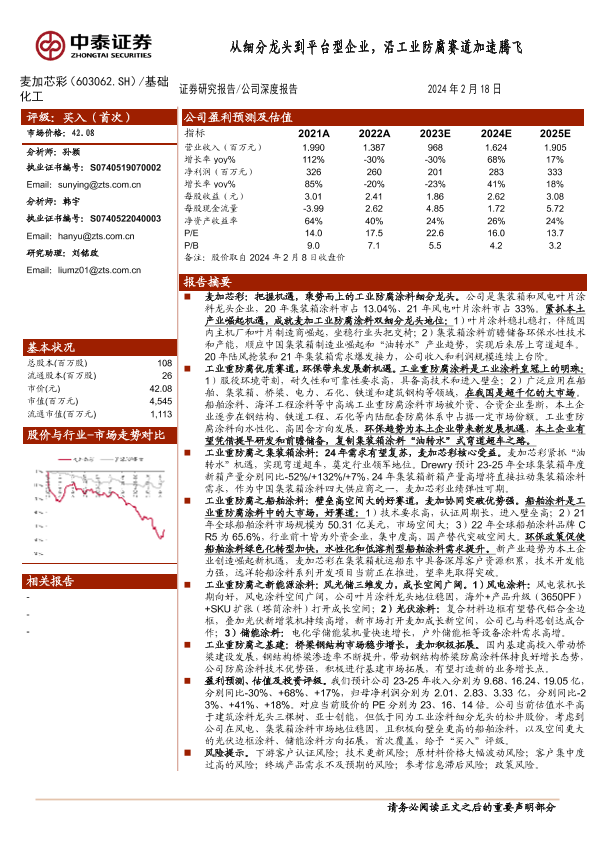【中泰证券】【20240218】从细分龙头到平台型企业,沿工业防腐赛道加速腾飞-42页