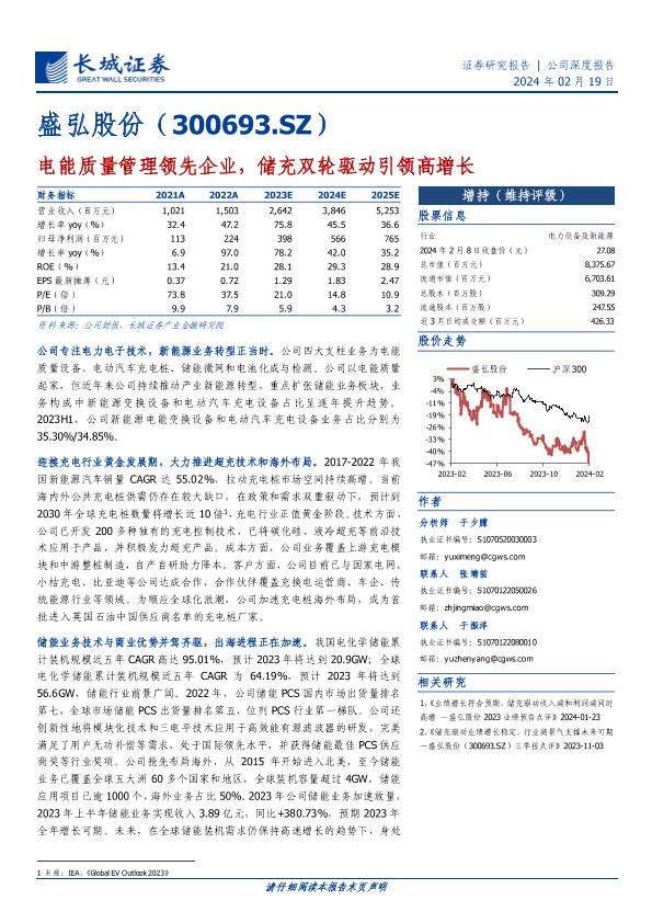 【长城证券】【20240219】盛弘股份:电能质量管理领先企业,储充双轮驱动引领高增长-43页