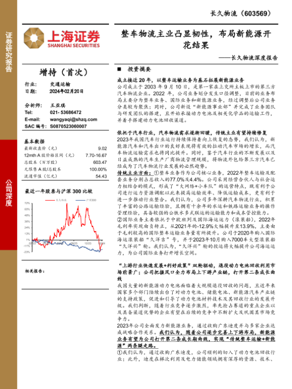 【上海证券】【20240220】长久物流深度报告:整车物流主业凸显韧性,布局新能源开花结果-25页