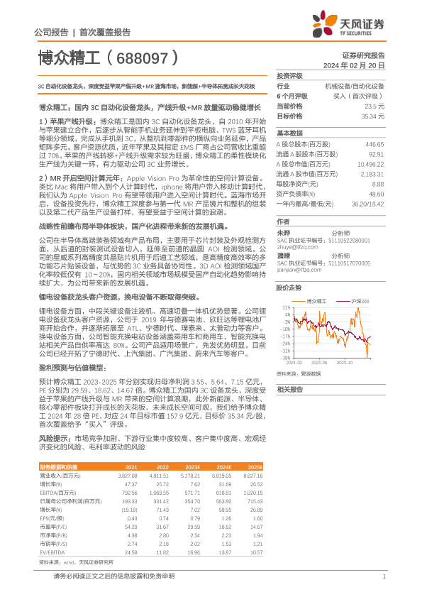 【天风证券】【20240220】20240220-天风证券-博众精工-688097.SH-3C自动化设备龙头,深度受益苹果产线升级+MR蓝海市场,新能源+半导体拓宽成长天花板-22页