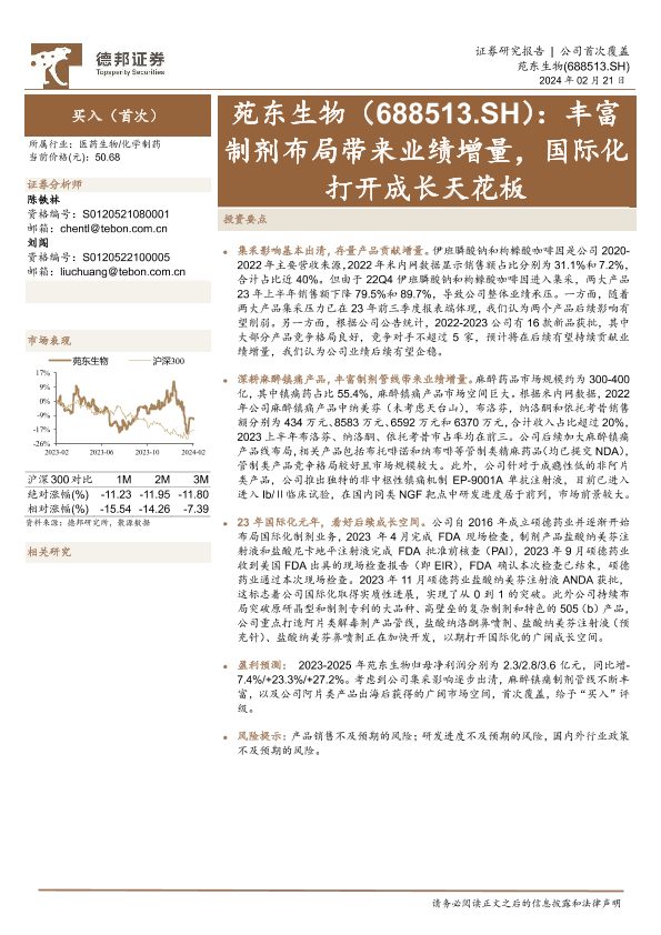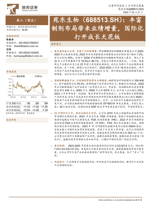 【德邦证券】【20240221】苑东生物:丰富制剂布局带来业绩增量,国际化打开成长天花板-25页