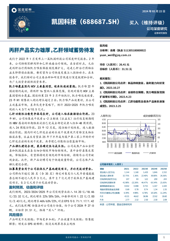 【国金证券】【20240222】国金证券-凯因科技-688687.SH-丙肝产品实力雄厚,乙肝领域蓄势待发-23页