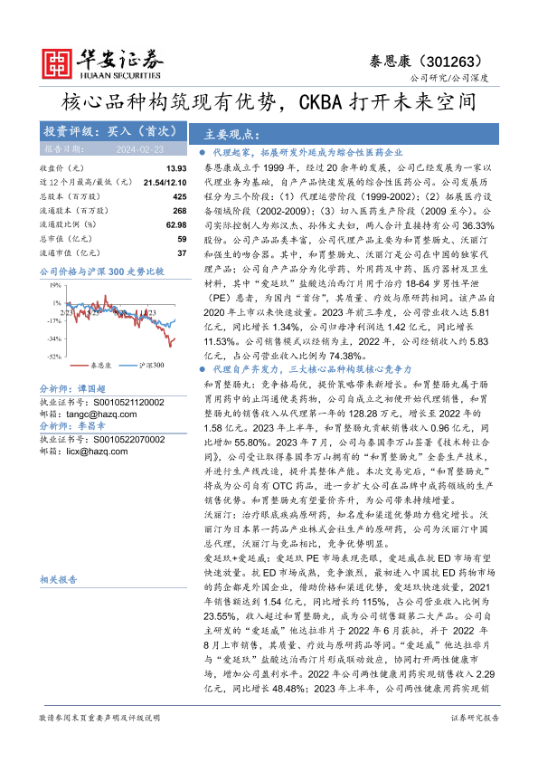 CKBA 两性健康 医药行业 核心品种 泰恩康