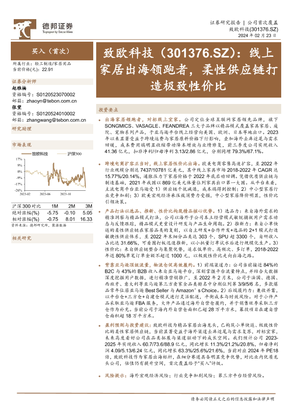 【德邦证券】【20240223】致欧科技-301376.SZ-线上家居出海领跑者,柔性供应链打造极致性价比-35页