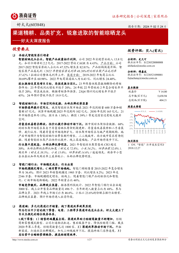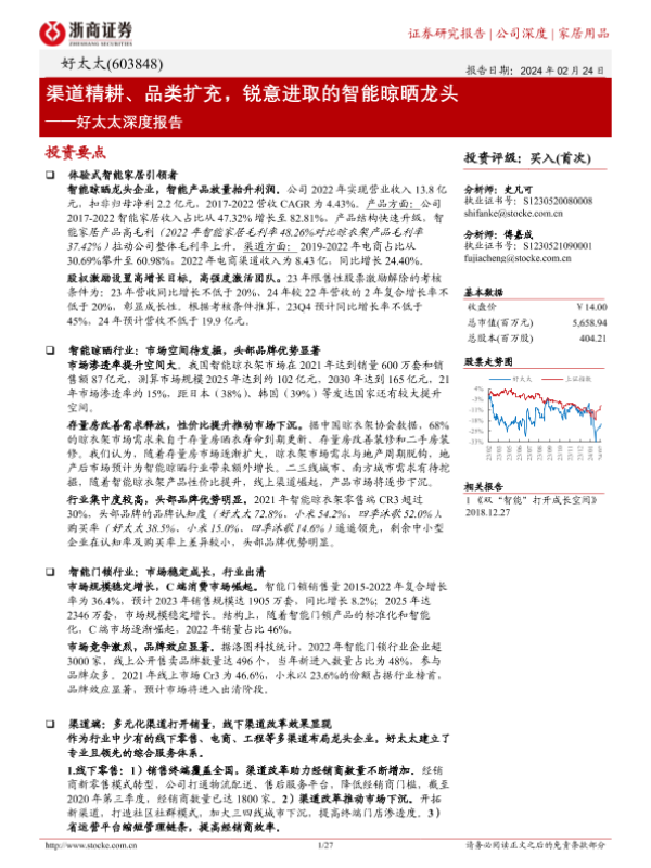 【浙商证券】【20240224】好太太深度报告:渠道精耕、品类扩充,锐意进取的智能晾晒龙头-27页