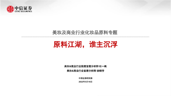 【中信证券】【20220516】美妆及商业行业化妆品原料专题:原料江湖,谁主沉浮-120页