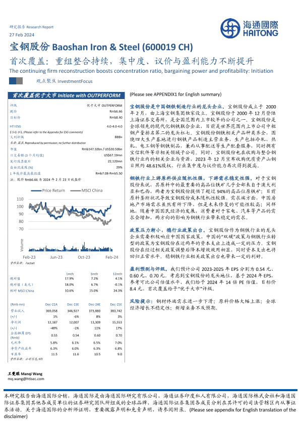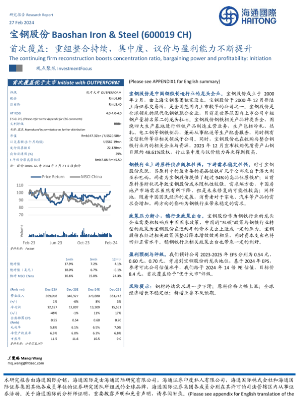 【海通国际】【20240227】20240227-海通国际-宝钢股份-600019.SH-首次覆盖:重组整合持续,集中度、议价与盈利能力不断提升-21页