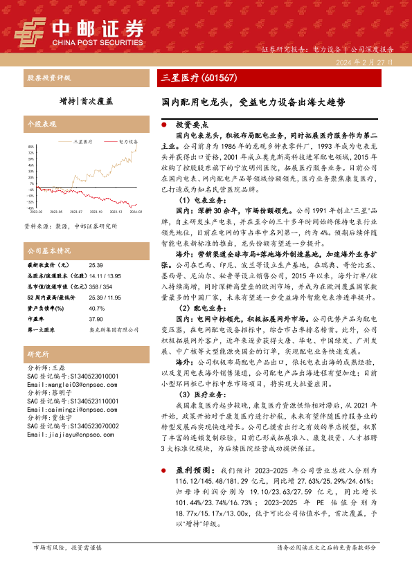 【中邮证券】【20240227】三星医疗-601567.SH-国内配用电龙头,受益电力设备出海大趋势-36页