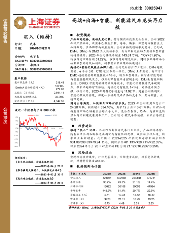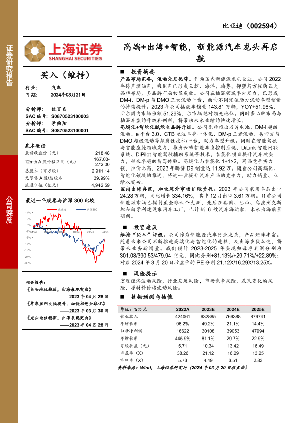 【上海证券】【20240321】高端+出海+智能,新能源汽车龙头再启航-24页