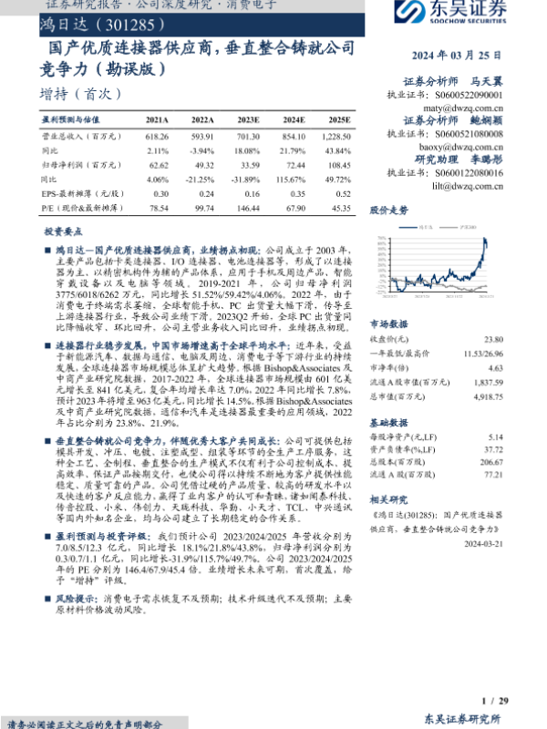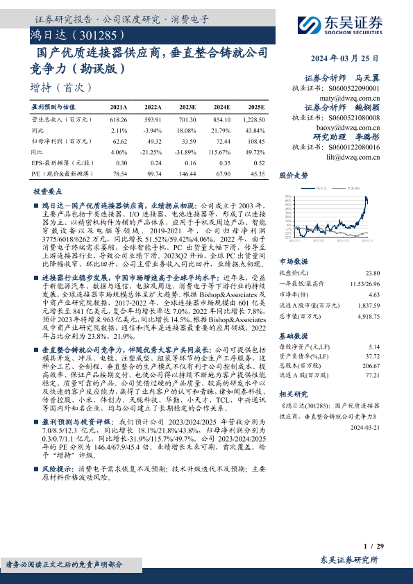 【东吴证券】【20240325】鸿日达-301285.SZ-国产优质连接器供应商,垂直整合铸就公司竞争力(勘误版)-29页