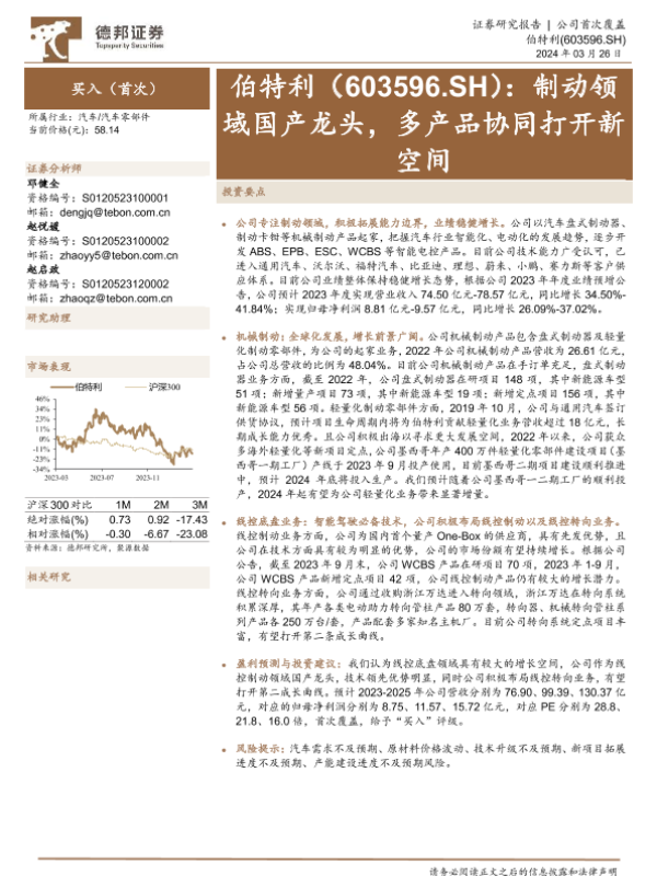 【德邦证券】【20240326】伯特利(603596.SH):制动领域国产龙头,多产品协同打开新空间-23页