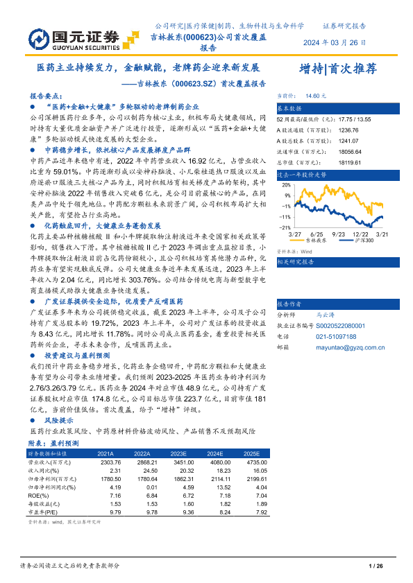 【国元证券】【20240326】医药主业持续发力,金融赋能,老牌药企迎来新发展-26页