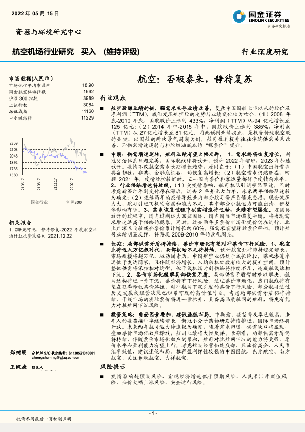 【国金证券】【20220515】航空机场行业深度研究:航空,否极泰来,静待复苏-20页