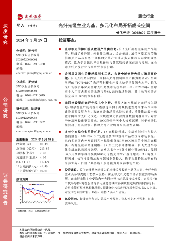 【东莞证券】【20240329】20240329-东莞证券-长飞光纤-601869.SH-深度报告:光纤光缆主业为基,多元化布局开拓成长空间-28页