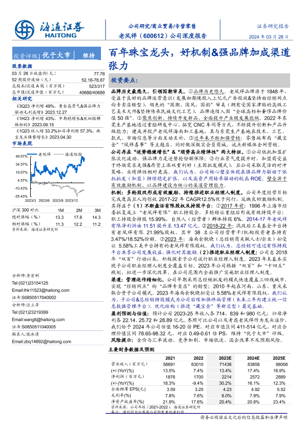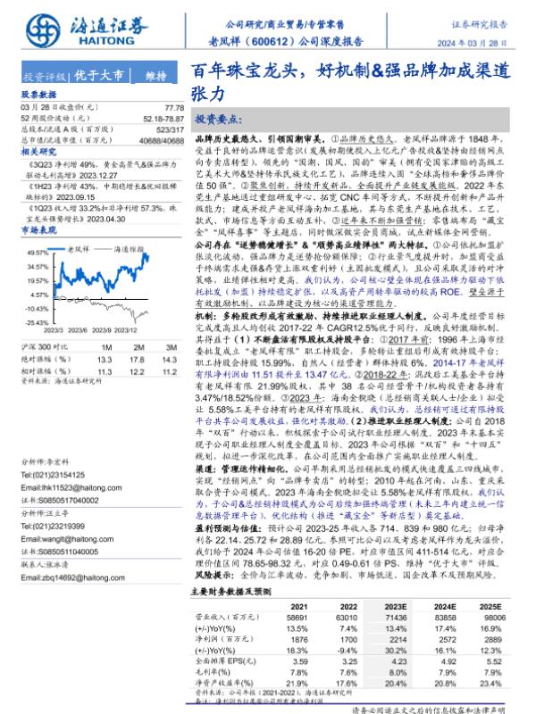 【海通证券】【20240328】20240328-海通证券-老凤祥-600612.SH-公司深度报告:百年珠宝龙头,好机制&强品牌加成渠道张力-26页