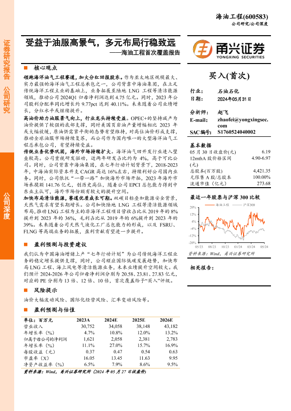 【甬兴证券】【20240531】海油工程首次覆盖报告:受益于油服高景气,多元布局行稳致远-21页