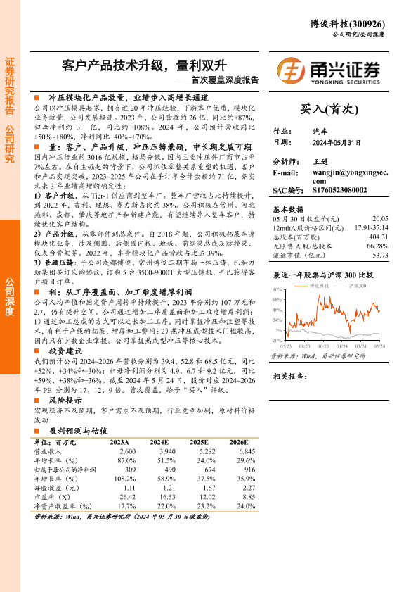 【甬兴证券】【20240531】博俊科技-300926.SZ-首次覆盖深度报告:客户产品技术升级,量利双升-25页