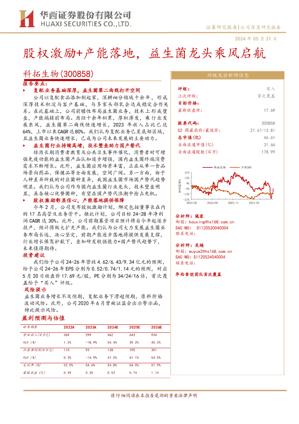 【华西证券】【20240521】股权激励+产能落地,益生菌龙头乘风启航-26页