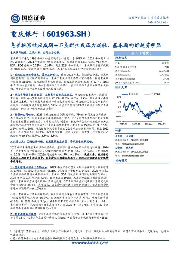 【国盛证券】【20240602】20240602-国盛证券-重庆银行-601963.SH-息差拖累效应减弱+不良新生成压力减轻,基本面向好趋势明显-26页