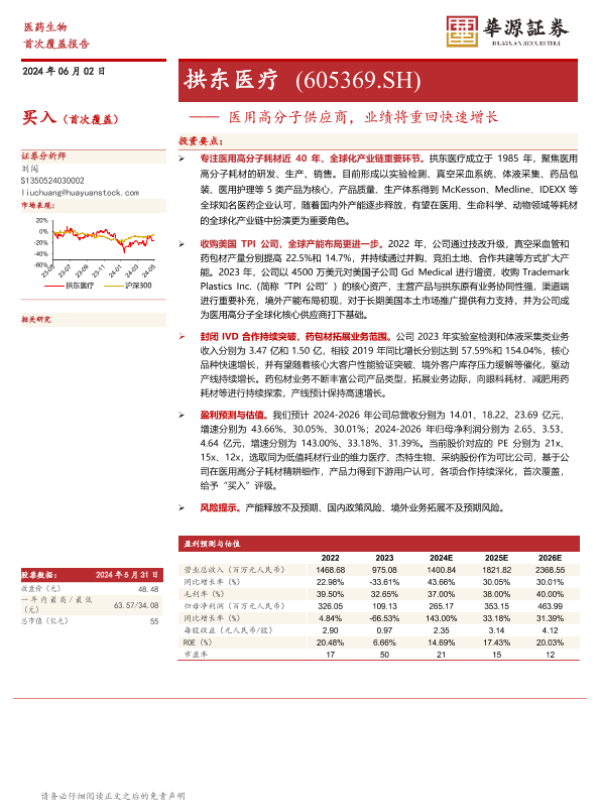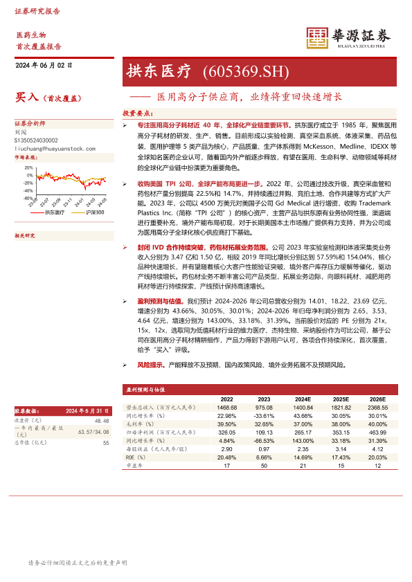 【华源证券】【20240602】拱东医疗-605369.SH-医用高分子供应商,业绩将重回快速增长-17页