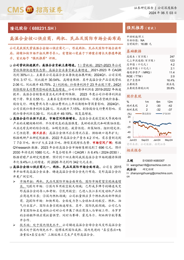 【海通证券】【20240603】隆达股份-688231.SH-高温合金核心供应商,两机、民品及国际市场全面布局-22页