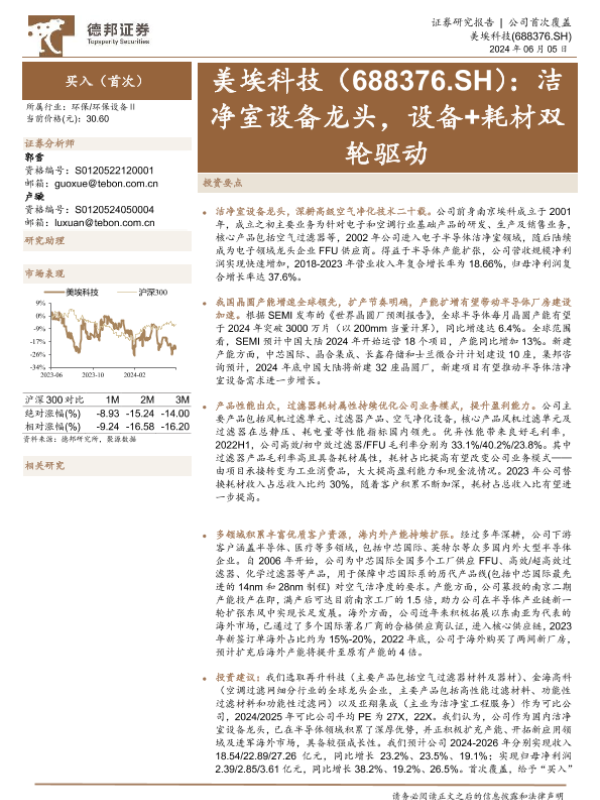 【德邦证券】【20240605】美埃科技-688376.SH-洁净室设备龙头,设备+耗材双轮驱动-24页