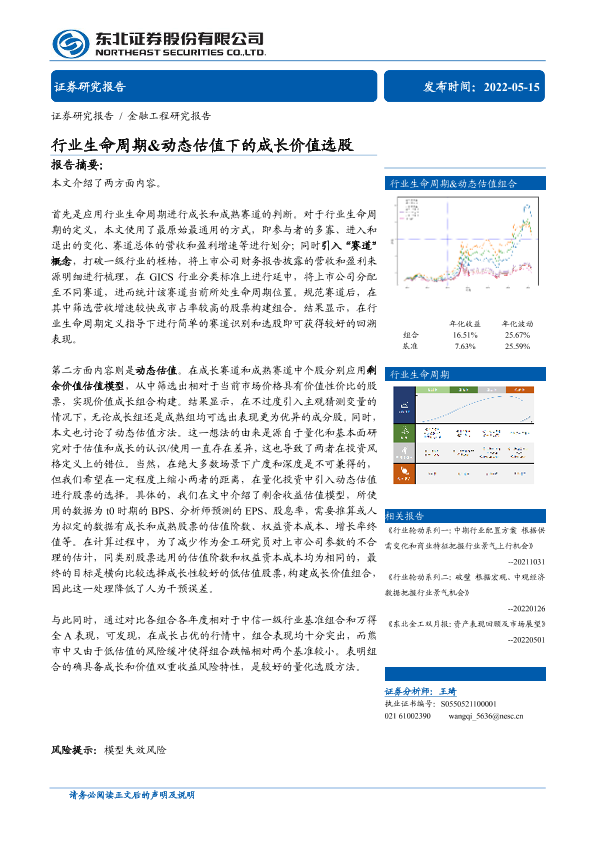 【东北证券】【20220515】行业生命周期&动态估值下的成长价值选股-22页