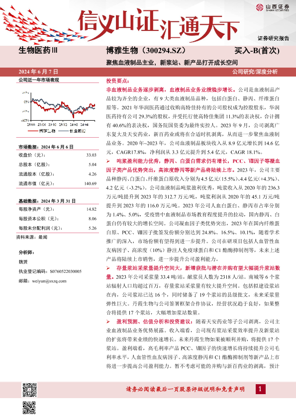 【山西证券】【20240607】博雅生物-聚焦血液制品主业,新浆站、新产品打开成长空间-31页