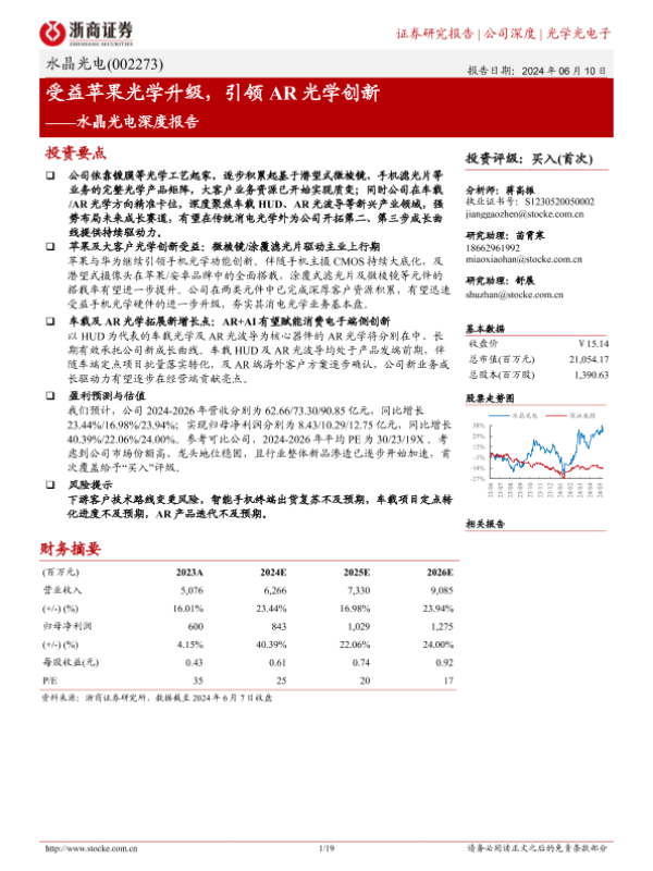 【浙商证券】【20240610】水晶光电深度报告:受益苹果光学升级,引领AR光学创新-19页