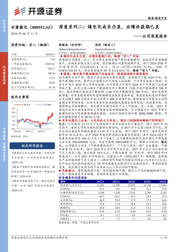 【开源证券】【20240611】公司深度报告:深度系列二:煤电化成长凸显,业绩收获期已至-23页