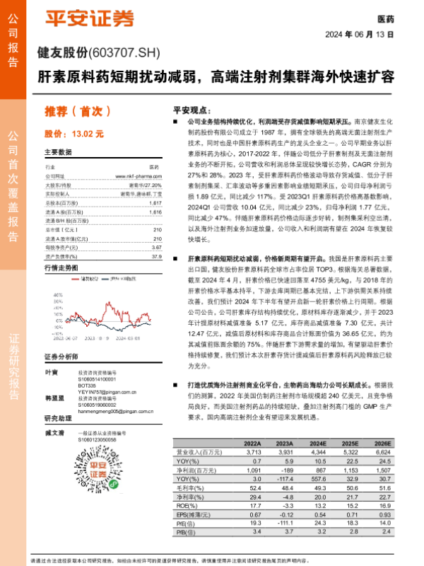 【平安证券】【20240613】健友股份-肝素原料药短期扰动减弱,高端注射剂集群海外快速扩容-21页
