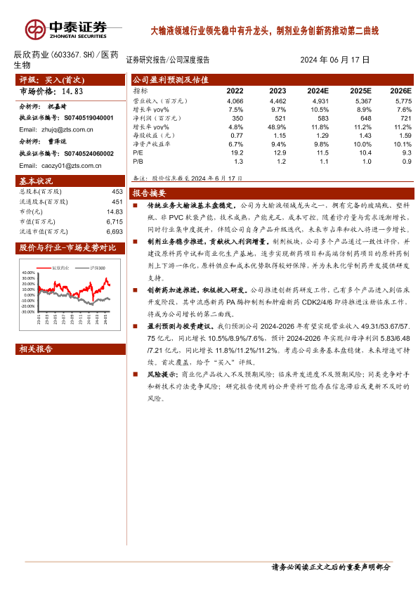 【中泰证券】【20240617】20240617-中泰证券-辰欣药业-603367.SH-大输液领域行业领先稳中有升龙头,制剂业务创新药推动第二曲线-18页