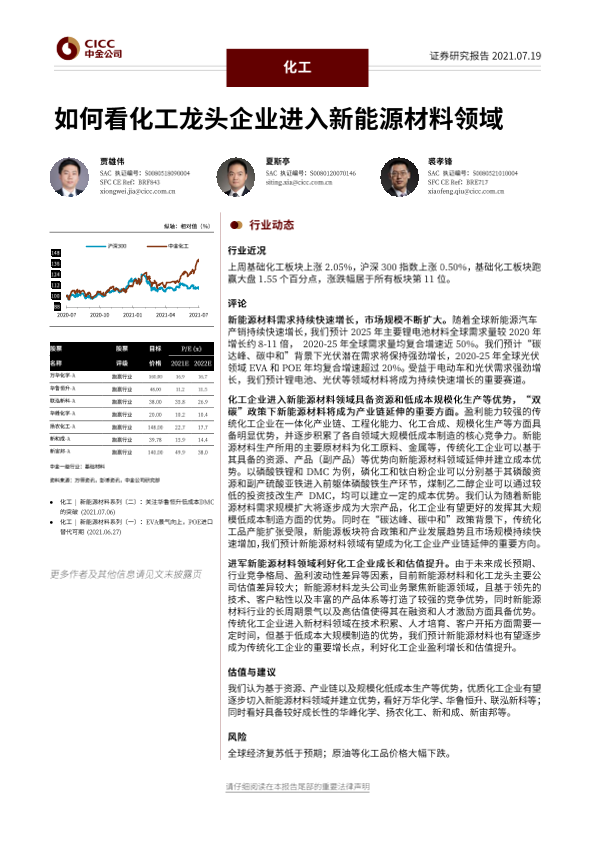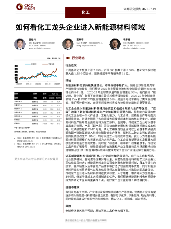 【中金公司】【20210719】化工行业:如何看化工龙头企业进入新能源材料领域-26页