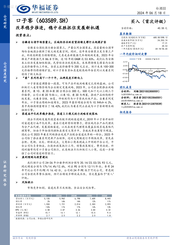 【华福证券】【20240618】口子窖-改革稳步推进,稳中求胜抓住发展新机遇-20页