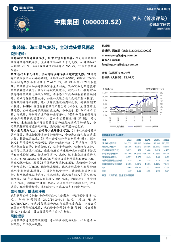 【国金证券】【20240618】中集集团-集装箱、海工景气复苏,全球龙头乘风再起-33页