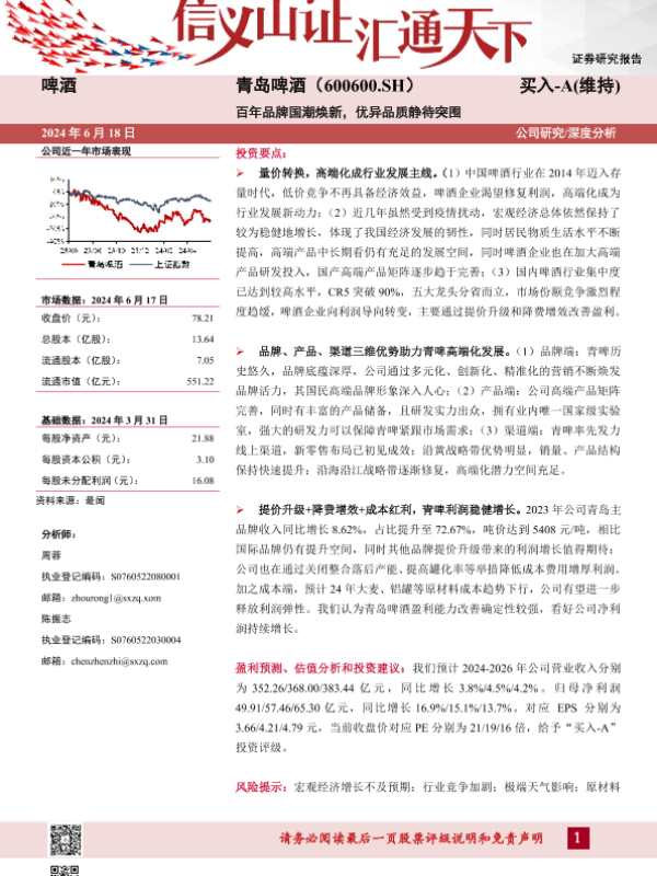 白酒行业 盈利能力 股票评级 青岛啤酒 高端化