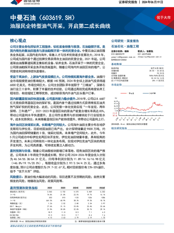 中曼石油 油服民企 油气开采 石油石化 第二成长曲线