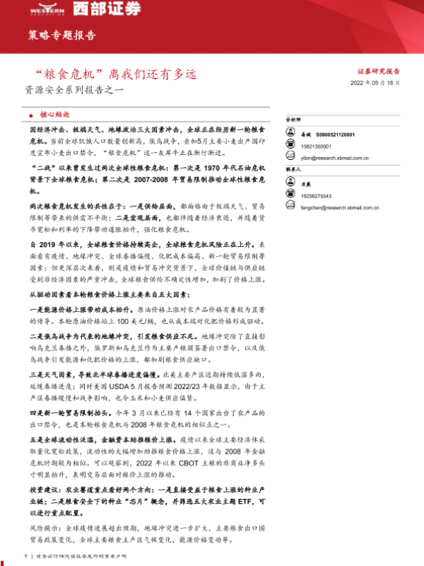 【西部证券】【20220518】资源安全系列报告之一:“粮食危机”离我们还有多远-15页