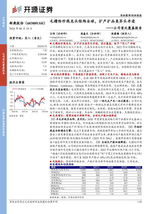 【开源证券】【20240619】新澳股份公司首次覆盖报告:毛精纺纱线龙头经纬全球,扩产扩品类齐头并进-39页