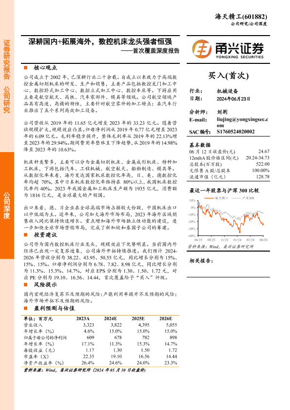 【甬兴证券】【20240623】20240623-甬兴证券-海天精工-601882.SH-首次覆盖深度报告:深耕国内+拓展海外,数控机床龙头强者恒强-23页