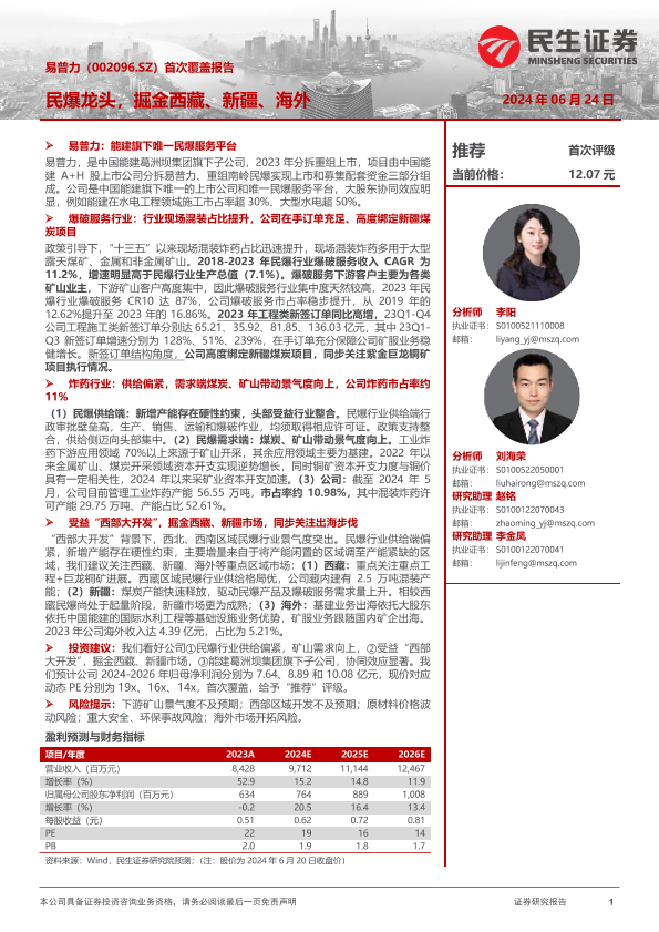 【民生证券】【20240624】易普力(002096.SZ)首次覆盖报告:民爆龙头,掘金西藏、新疆、海外-22页