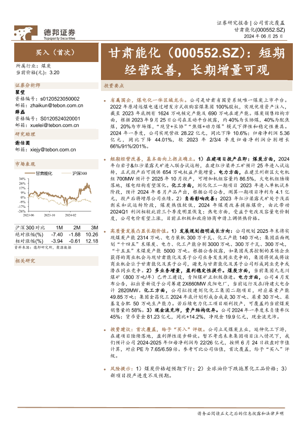 【德邦证券】【20240625】20240625-德邦证券-甘肃能化-000552.SZ-短期经营改善,长期增量可观-22页