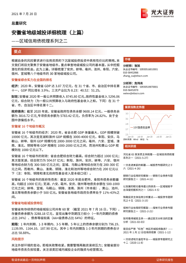 【光大证券】【20210720】区域信用债梳理系列之二:安徽省地级城投详细梳理(上篇)-42页