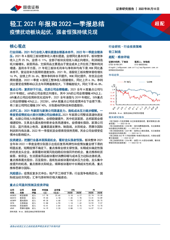 【国信证券】【20220515】轻工行业2021年报和2022一季报总结:疫情扰动板块起伏,强者恒强持续兑现-32页
